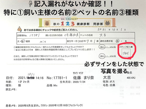 【成果】キャンペーン中に撮影漏れがあっため、会計前に受付スタッフが看護師のサインを確認。ダブルチェックで撮影漏れを防止できた。